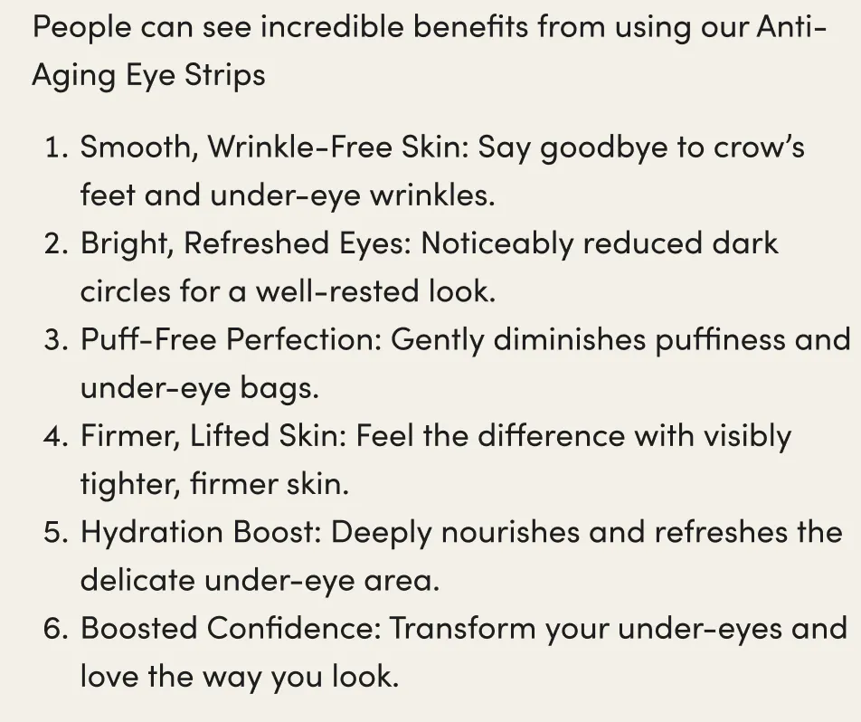 People can see incredible benefits from using our Anti-Aging Eye Strips
